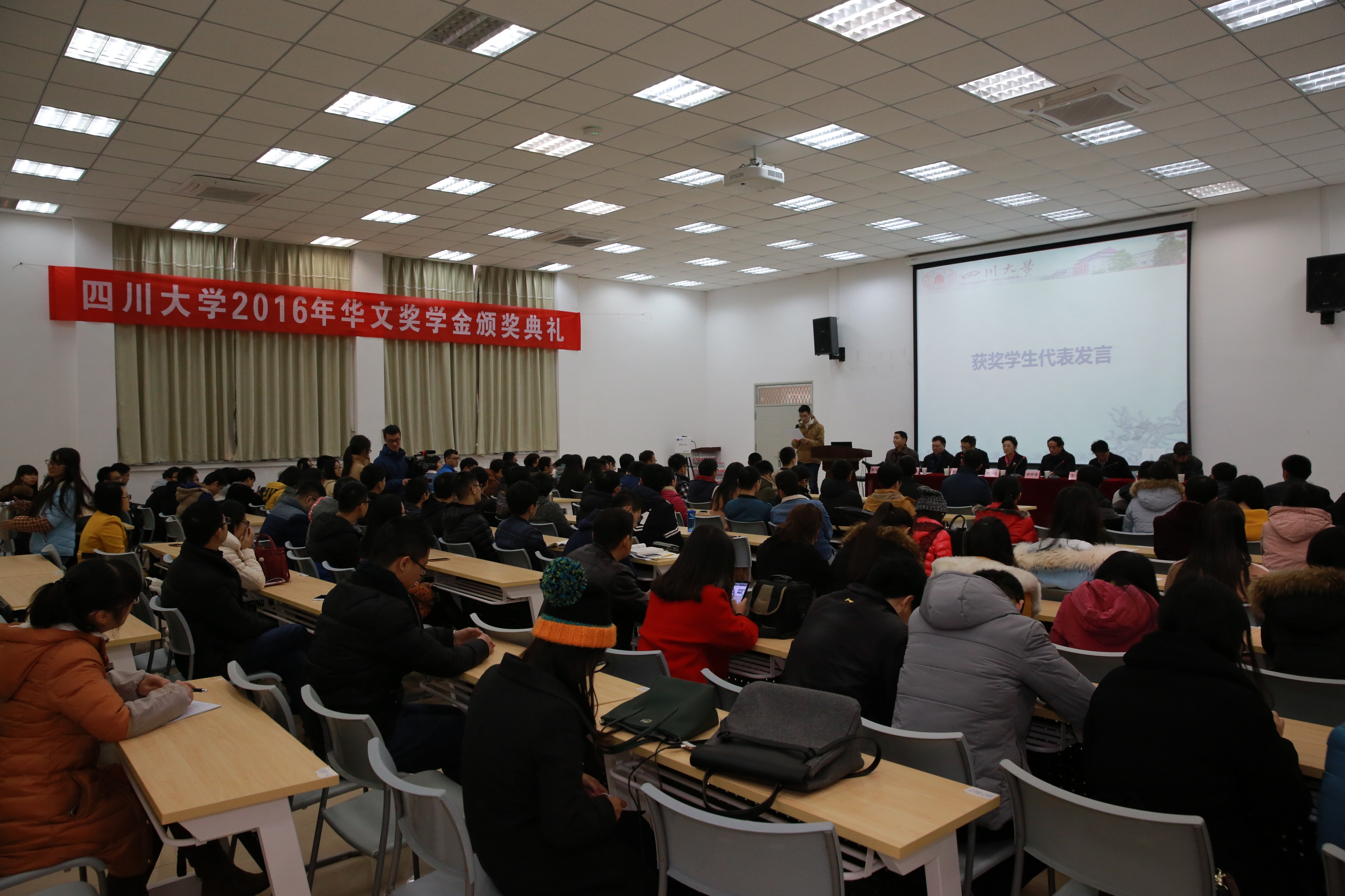 2016年12月30日下午1:00,“四川大学 华文奖学金”颁奖典礼在四川大学西五教附101报告厅顺利举行。四川大学党委副书记、纪委书记徐兰教授,四川大学退休教师、成都市人民政府参事、成都万江港利科技股份有限公司董事长古钟璧教授,四川大学校长助理、党委学生工作部部长、学生处处长郭勇教授,四川大学教育基金会秘书长荣建国,bat365在线体育登录党委书记蒋斌,院长黄卡玛教授,副院长周新志教授和院党委副书记陈笃海,成都万江港利科技股份有限公司总经理贺新先生出席了典礼。学院学生科全体老师,获奖学生和部分学生代表参加了此次颁奖会,颁奖典礼由院党委副书记陈笃海主持。