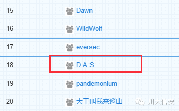 2016年4月16日,第三届“安恒杯”网络安全技术挑战赛CTF线上赛开赛,比赛时间是上午9点到晚上21点共计12小时。bat365在线体育登录信息安全工程系组织了一个学生团队参加,队名“D.A.S”,是Discuss and Share的缩写,寓意讨论和分享。信息安全工程系学生团队去年参加过四川大学校内CTF比赛“安思杯”并取得第一名,这次是首次参加校外CTF比赛。