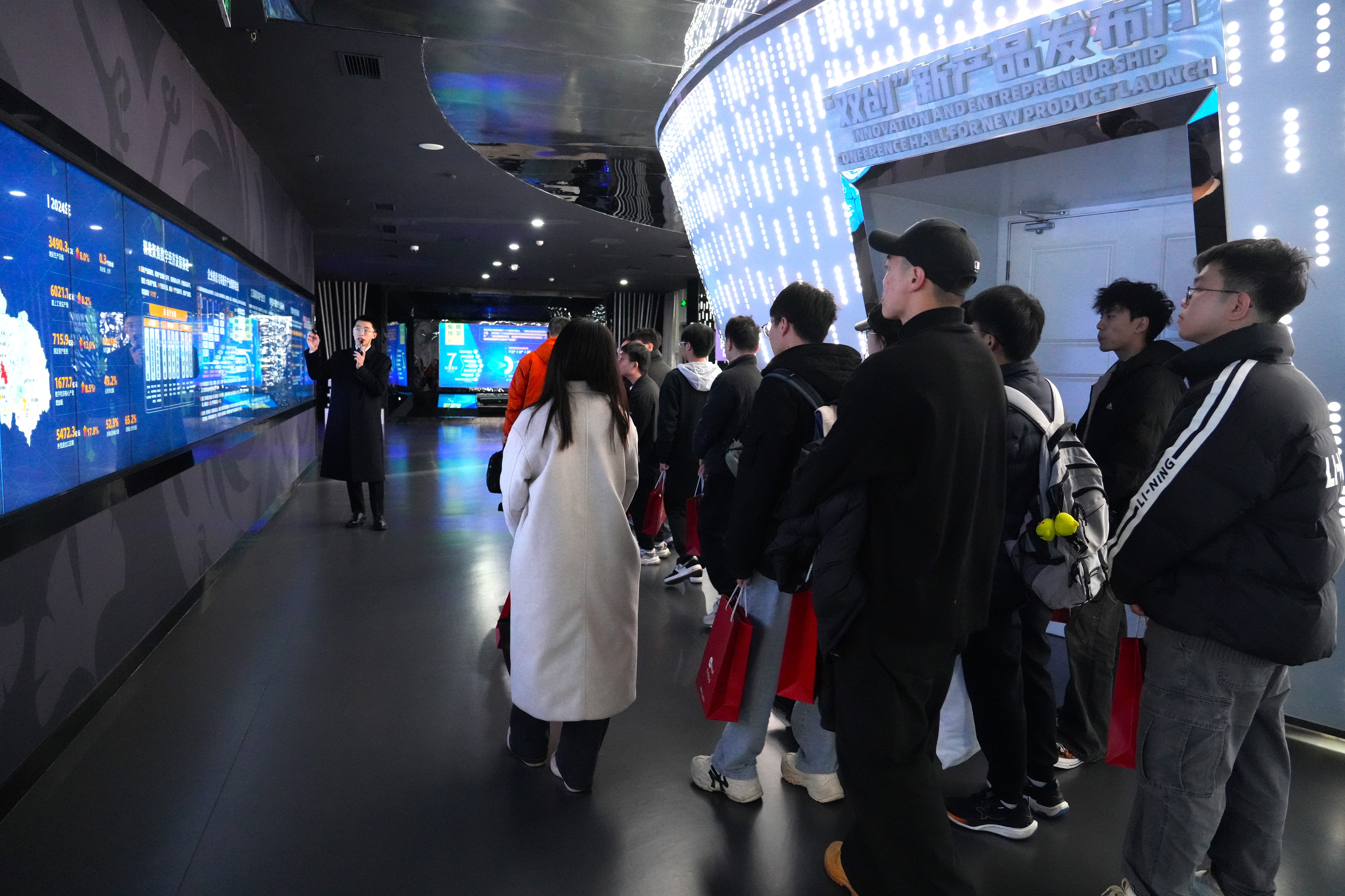 随后,师生一行前往成都高新天府软件园科技馆参观学习。在讲解员的引导下,同学们系统了解了天府软件园从初创探索到数字产业高地的建设历程,认识到园区在软件工程、数字经济、人工智能等领域的生态布局与创新成果。通过对区域产业链发展的脉络梳理,同学们不仅对成都高新区数字产业的整体格局有了更直观的认识,也进一步明确了自身在未来科技创新版图中的定位与发展方向。