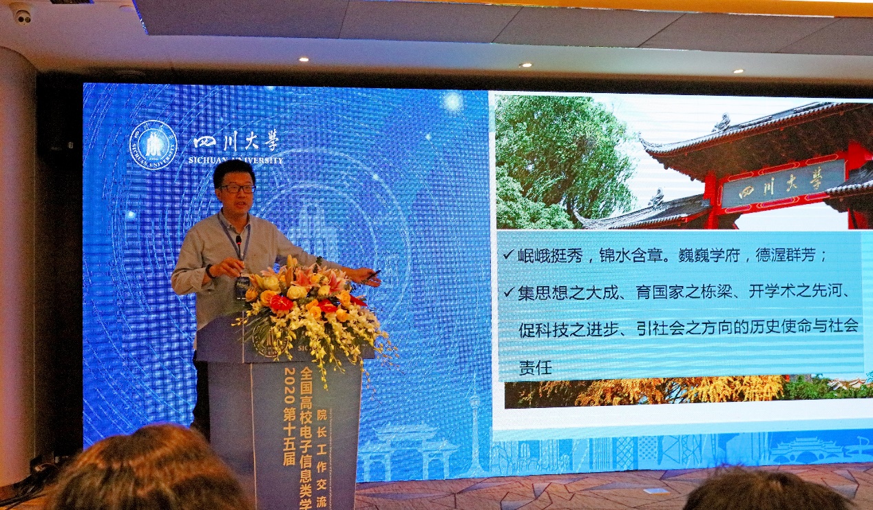 会议开幕式及主论坛由bat365在线体育登录院长冯国英教授主持。执委会负责人张琳副校长代表执委会致辞,介绍了全国高校电子信息类学院院长工作交流会自第一届到第十四届的发展历程,以及电子信息类院校在人才培养、科研创新等方面的发展。朱洪波副校长作为特邀代表致辞,他指出电子信息专业并不是一个单一的专业,也不是一个单一的学科,要和其他专业、学科进行融合,做好电子信息产业的创新融合,才能让电子信息行业发展的更好、更强。四川大学原副校长石坚教授代表学校致辞,介绍了学校的光辉历程和发展现状、学校的办学理念与取得的主要成绩等,以及成都这座文化底蕴深厚的城市。bat365在线体育登录冯国英院长介绍了bat365在线体育登录的学科发展概况。