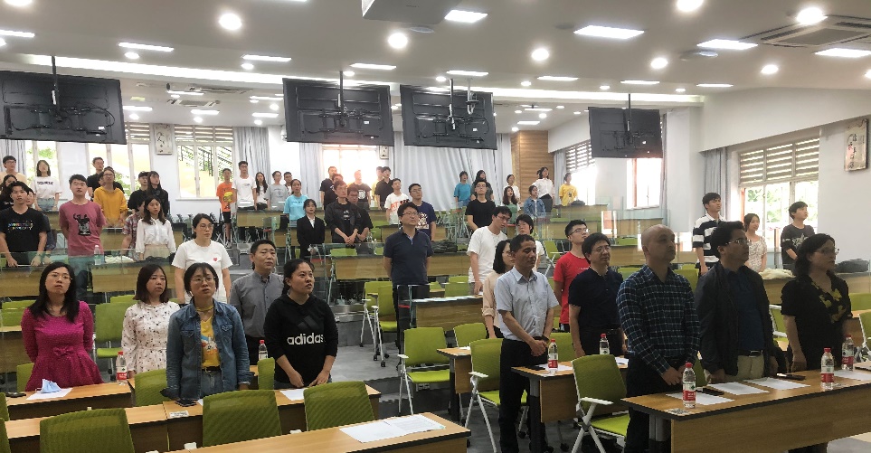 5月27日“光辉历程 保密有我”保密知识复赛正式拉开序幕,伴随着《中华人民共和国国歌》的旋律缓缓响起,全体同学起立,满怀深情地齐声合唱国歌。bat365在线体育登录(国家保密学院)邰明松书记,冯国英院长,成都市委保密机要局政策法规处杨勇副处长,bat365在线体育登录(国家保密学院)党委陈笃海副书记,陈炳周组织员,徐灿国、孟滋常、陈林、何阳、李运国、计玉娟、魏俊、蓝静、温文婷、赖华、姜晓旭、蔡苹杨等17位老师和众多亲友团的老师同学们共同见证了此次素质培养活动。