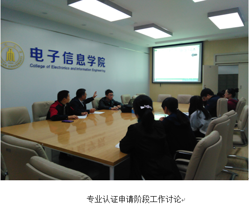 为促进专业建设和发展,经过研讨,学院确定电子信息工程、电子科学与技术2个专业开展2017年工程教育专业认证申请工作。学院组织2个专业的负责人及相关参与老师从7月份开始做申请的组织、准备,召开了2次会议,认真学习教育部高等教育教学评估中心、中国工程教育专业认证协会关于工程教育认证的最新标准、程序等相关工作文件。参与专业认证工作申请的老师暑假无休,9月开学后在正常工作时间外经常晚上、周末加班,周新志副院长多次组织召开工作进展报告会、专业数据分析报告统筹会。直至10月下旬,2个专业分别完成了300多页的《工程教育认证申请书》、《专业基本状态数据采集表》和《专业基本状态数据分析报告》,并提交中国工程教育专业认证协会。