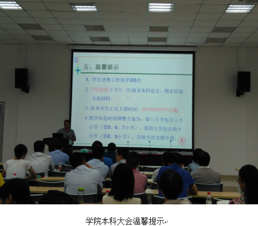 学院高度重视本科开学教学各环节工作。一方面,学院制定了开学教学检查安排表,分工好每天检查领导和教务人员、辅导员老师;安排新学期开学教务管理人员提前三天上班,核查教学课表并短信、QQ通知老师们正式上课时间,做好教材、授课教学准备,通知上课的教师提前30分钟到达上课教室,确定教室多媒体等教学设备正常使用,确保教学正常运行;要求各年级辅导员老师清点学生报到情况,并提醒学生做好上课准备按时上课。另一方面,学院早在上学期末暑假放假前全院大会上,教学院长周新志教授通知老师们新学期正式行课时间,要求老师们认真学习学校文件《四川大学本科教学事故认定及处理办法》(川大教【2015】60)及《四川大学本科课堂教学管理办法》(川大教【2015】76),在暑假进行教学备课,并布置教学秘书将新学期课程表邮件发到全体教师,务求通知无遗漏。