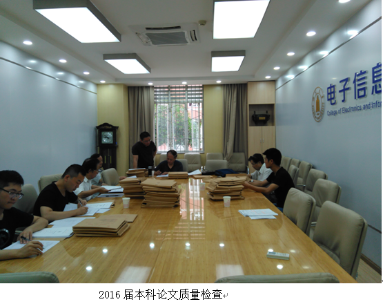 为保证学生培养质量,学院于2016年7月6日在基教A112会议室组织了本院督导专家对2016届85位同学的本科毕业论文(设计)进行了检查工作。所抽查的同学涉及电子信息工程、电子信息工程(卓越工程师班)、电子信息科学与技术,电子科学与技术、光信息科学与技术和信息安全共6个专业,基本保证了每位指导老师检查一本。