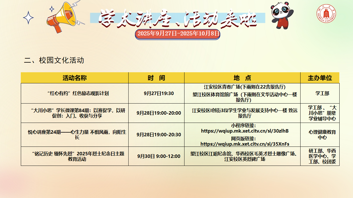 2025年9月27日-2025年10月8日学术讲座、活动安排