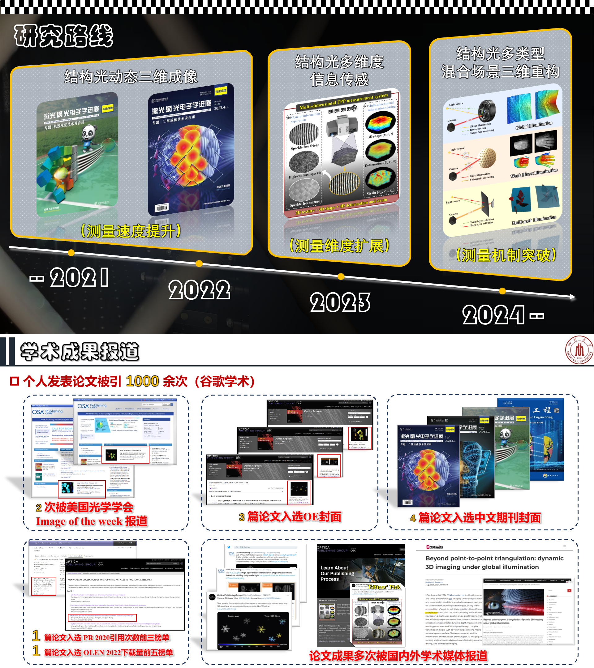 13. Wu Z, Guo W, & Zhang Q. High-speed three-dimensional shape measurement based on shifting Gray-code light[J]. Optics Express, 2019, 27(16): 22631-22644. (封面文章,OPTICA出版社 “Image of the Week”报道,被引145次)
