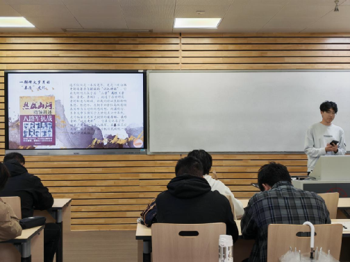 在读书分享环节中,秦煜周、罗崇峻两位同学分享了书籍《热血山河将领讲述:八路军抗战》,回顾了八路军在抗日战争中挺身而出、浴血奋战的峥嵘岁月,彰显了中国共产党在抗战中的中流砥柱作用。