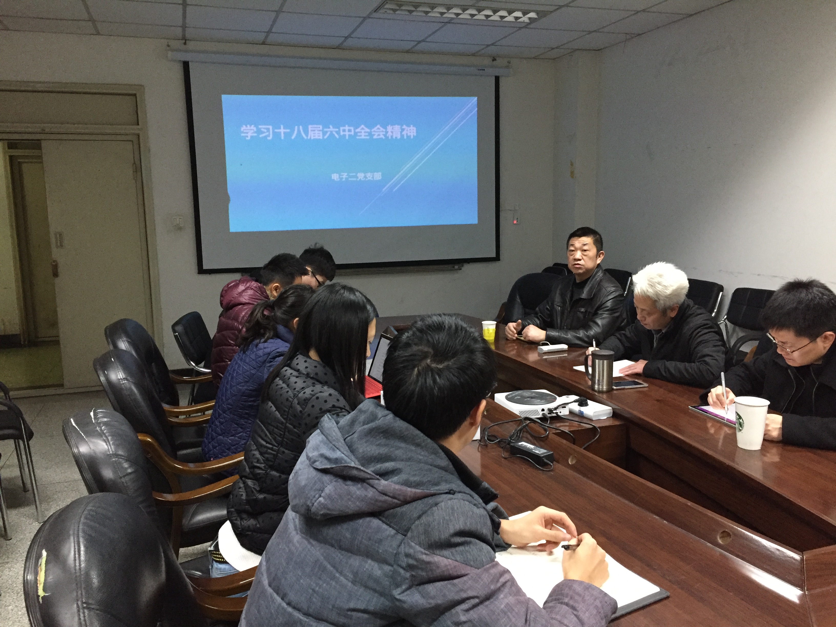 2016年12月2日16:00-17:30,bat365在线体育登录电子二党支部在基础教学楼B507会议室开展了以“党的十八届六中全会精神”为主题的组织生活会。
