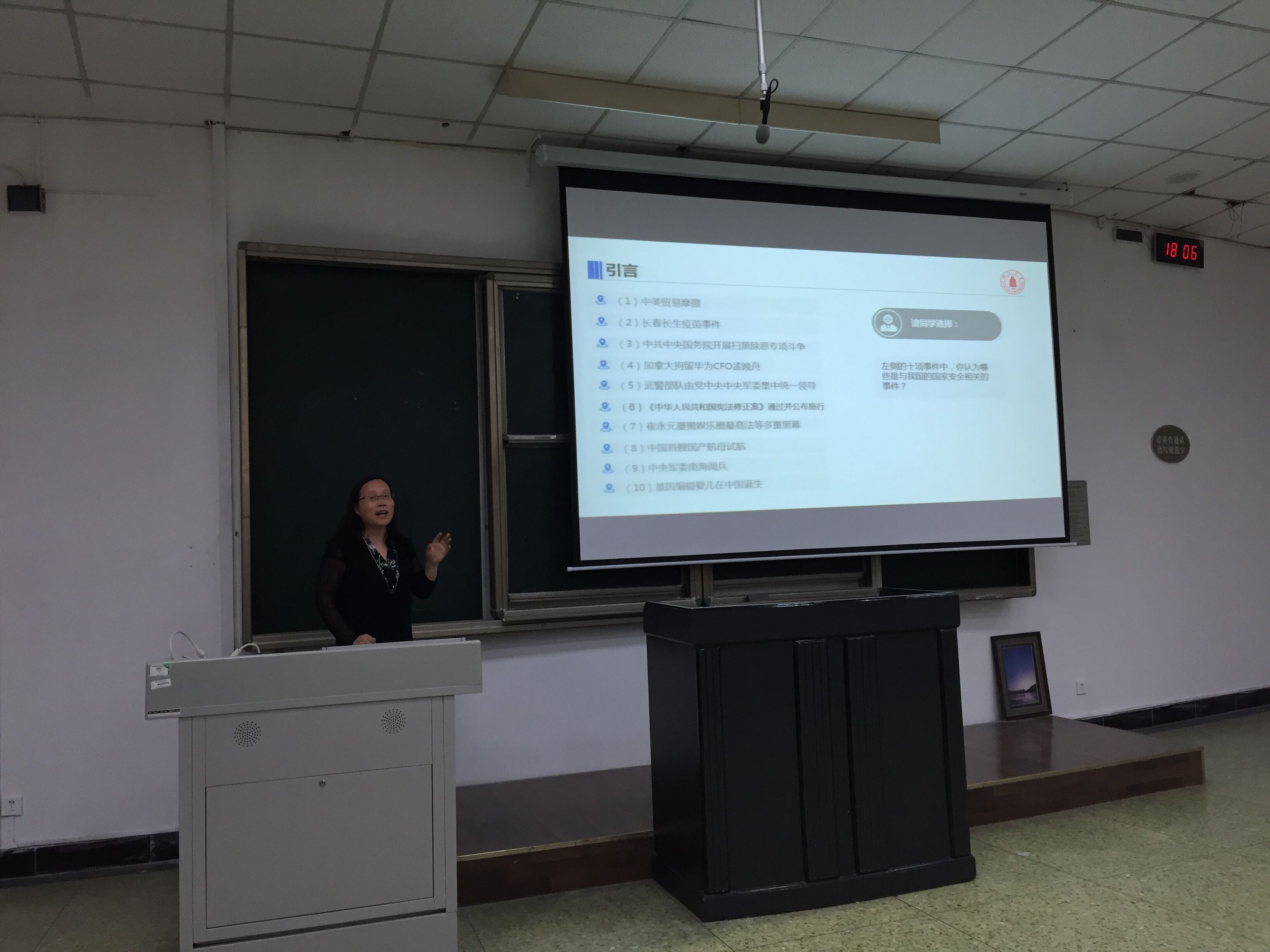 冯国英院长通过现场课堂交流问答、观看小视频、课堂讲授等多种方式向同学们从新时代国家安全的总体框架 、习总书记的“总体国家安全观”、国家安全的基础法律知识、高校中的国家安全等方面全面讲解了国家安全的相关知识。