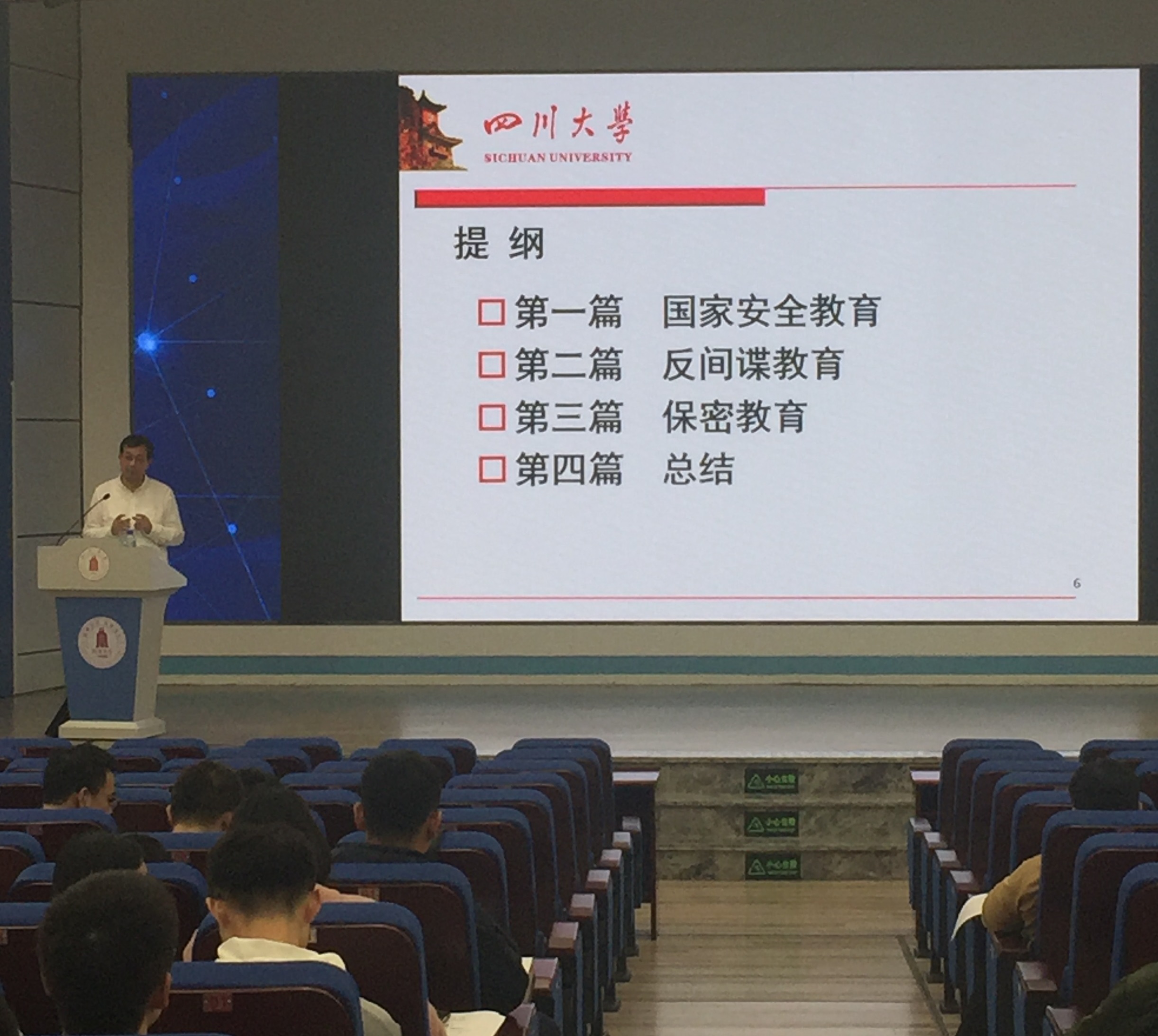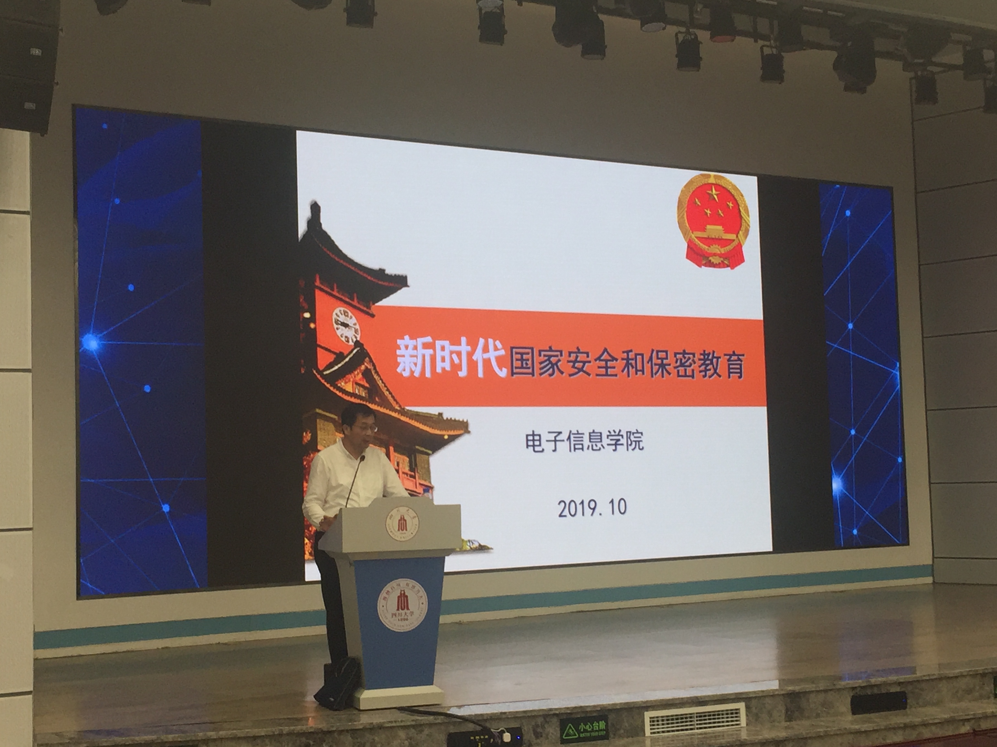 2019年11月1日下午,在望江校区东三教学楼演播厅,bat365在线体育登录党委书记邰明松同志为学院2016级部分本科生讲授了题为《新时代国家安全和保密教育》的专题思想政治理论课。