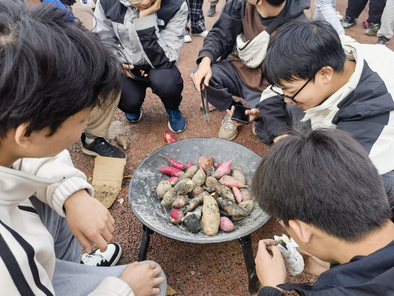 随后同学们带上刚挖的红薯,来到一旁准备好的烤炉旁,先是为炭生上火,然后将红薯放在上面炙烤,同学们围炉而作,香气四溢,品尝着红薯,体味着“一分耕耘一分收获”。