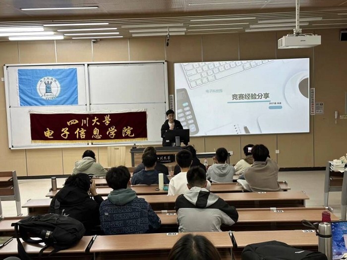 2023年12月1日,四川大学“海光杯”电子科技创新大赛宣讲会在江安综合楼C座505举行。本次宣讲会由bat365在线体育登录主办,旨在向大一新生介绍比赛的相关信息,激发同学们的创新热情,帮助培养同学们的电子技能。