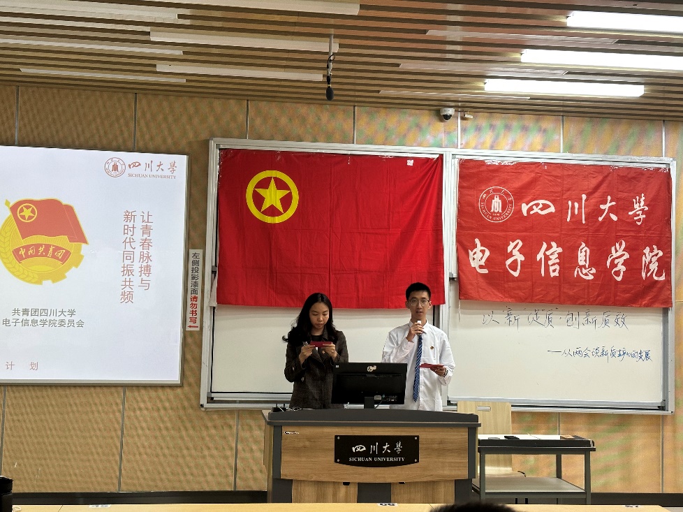 为深入学习贯彻全国两会精神,提升同学们对于时代发展动向的把握,培养创新思维和创新能力,3月29日晚上,由院团委主办的“以新促质,创新质效——从两会谈新质生产力发展”主题团课于四川大学江安校区综合楼C203顺利举行。本次主题团课由四川大学青年讲师团成员、院团委副书记申鑫老师主讲,部分团学干部、学生代表参加。