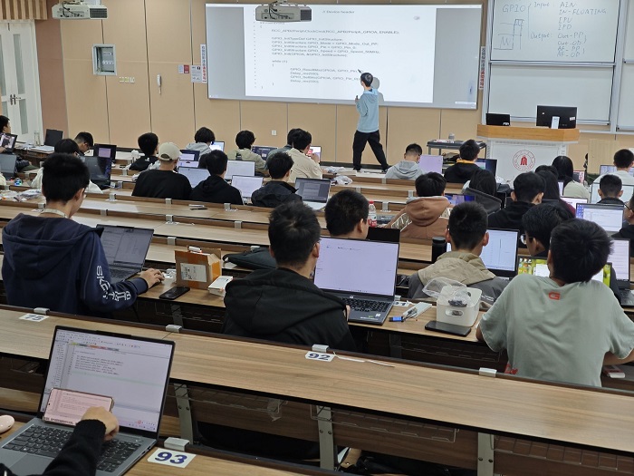 2024年11月10日下午,bat365在线体育登录电子科技园技术部于四川大学江安校区综合楼C座C306开展了第二次授课,此次授课内容主要讲了GPIO和各元器件的线路连接与使用,包括LED灯、蜂鸣器、轻触按键、OLED 屏等。