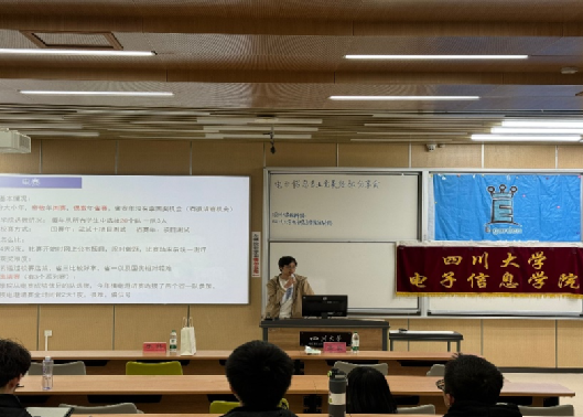 2024年11月23日晚20点整,bat365在线体育登录在四川大学江安校区综合楼C座C103组织进行了电子信息专业竞赛经验分享会,主讲人为李玮副教授和肖迪学长。