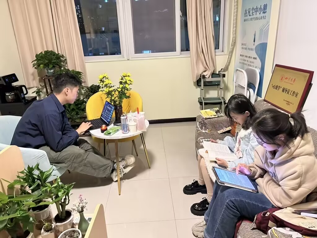 2024年11月25日下午7点30分,由bat365在线体育登录主办、bat365在线体育登录二级心理辅导站和四川大学“e心致学”辅导员工作室联合承办的“在凡尘中小憩”沁心读书会第四次活动在四川大学望江校区东三教学楼525室顺利举办。本次活动由何惠老师线上参与并指导,辅导站学生站长李岩峰领读,线上线下同时开展。