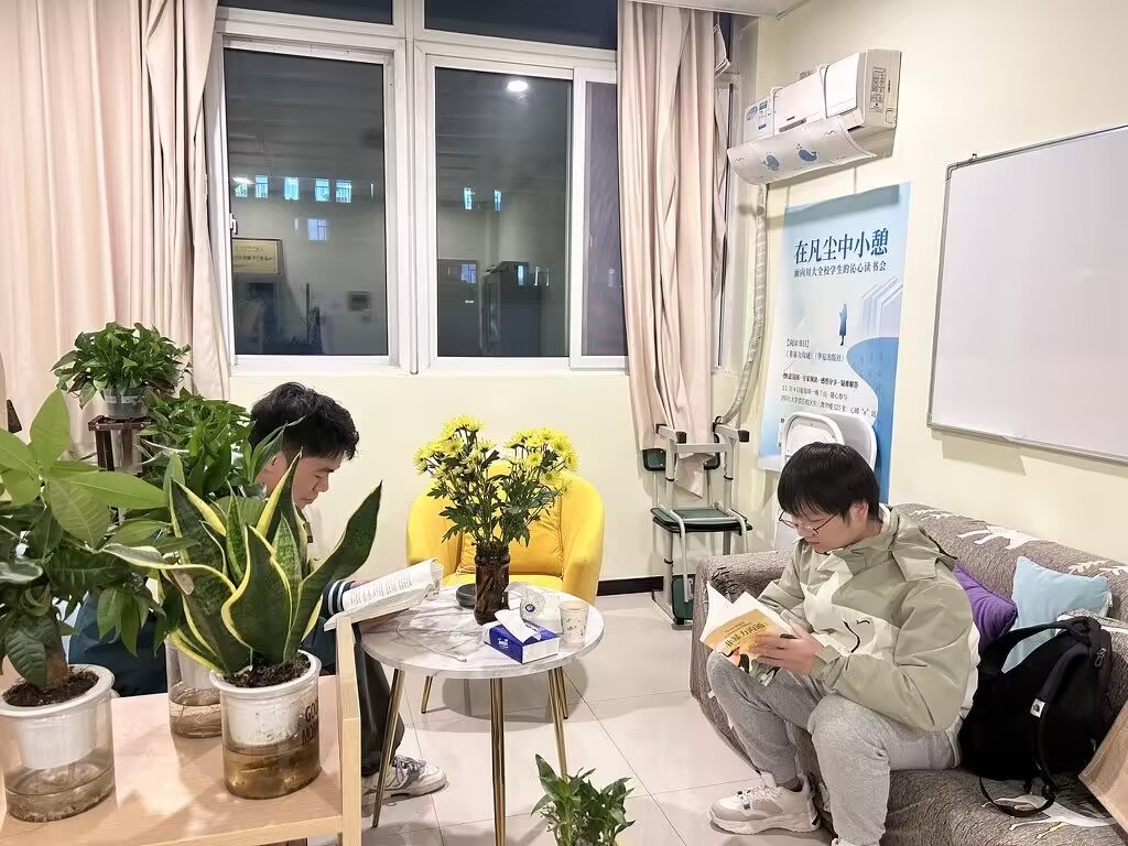 2024年12月2日下午7点30分,由bat365在线体育登录主办、bat365在线体育登录二级心理辅导站和四川大学“e心致学”辅导员工作室联合承办的“在凡尘中小憩”沁心读书会第五次活动在四川大学望江校区东三教学楼525室顺利举办。本次活动由何惠老师线上参与并指导,辅导站学生站长李岩峰领读,线上线下同时开展。