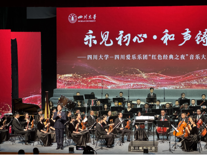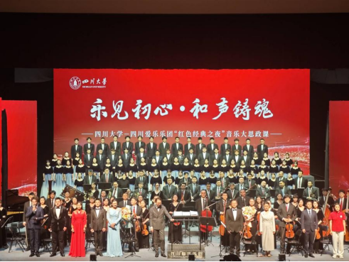 在四川大学江安校区多学科交叉融合平台及艺术教育中心多功能厅内,一场别开生面的文化盛宴——“乐见初心·和声铸魂——四川大学-四川爱乐乐团‘红色经典之夜’音乐大思政课”缓缓拉开帷幕。这座建筑以其独特的空间设计,为即将上演的音乐与思想的碰撞提供了完美的舞台。
