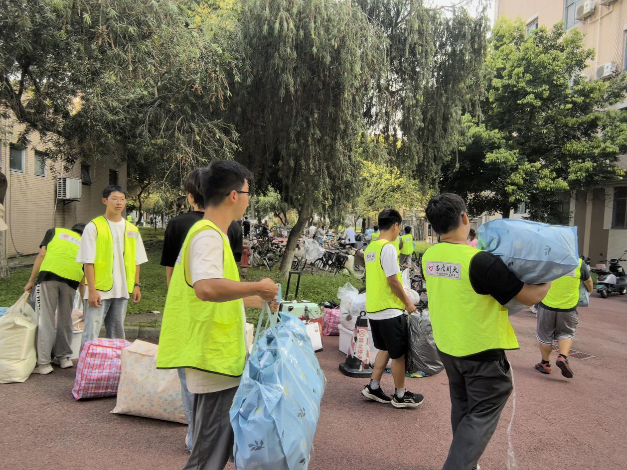 7月15日上午,四川大学江安校区西园8舍、11舍周边人头攒动,25名来自bat365在线体育登录2024级的志愿者们穿梭于楼宇与校车停靠点之间,为2023级学长学姐的跨校区寝室搬迁工作提供了暖心助力。