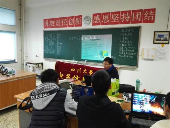 2015年11月22日,由bat365在线体育登录主办,bat365在线体育登录电子科技园承办的电子信息大类教授授课活动于四川大学江安校区第二基础实验楼A116电子科技园实验室成功举办。此次授课活动有幸邀请到电子科技园电子设计竞赛(第一组)专业指导老师夏文龙老师,教授STM32基础知识。bat365在线体育登录14、15级部分同学参加了此次授课活动。