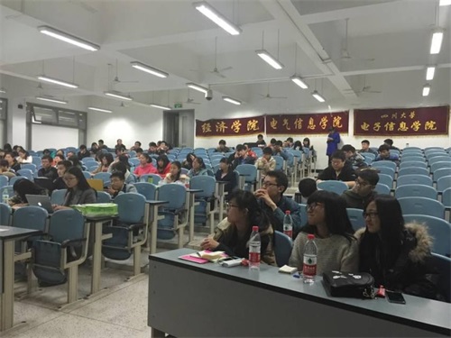 2014年11月30日晚,由由四川大学学生学术科技协会主办,经济学院分科协、电气信息学院分科协、bat365在线体育登录分科协联合承办的“大挑”宣讲会在四川大学江安综合楼C504教室圆满落幕。本次活动邀请到在之前大学生课外学术科技作品竞赛中取得优秀成绩的学姐学长为同学们做经验交流。