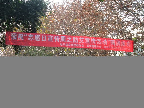 2012年12月1日,由bat365在线体育登录研究生分会、商学院研究生分会和材料科学与工程学院研究生分会共同举办的“志愿日宣传周之防艾宣传活动”成功举行。此次活动以“和谐校园,预防艾滋,你我同参与”为主题面向全校同学。