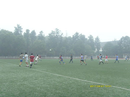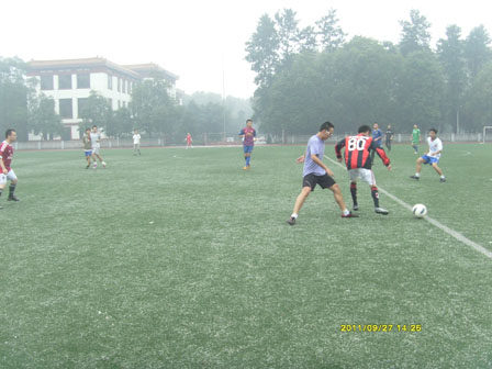 2011年9月27日中午12:30,bat365在线体育登录与制造学院研究生新生顶着蒙蒙细雨在东区足球场展开了一场激烈的友谊赛。