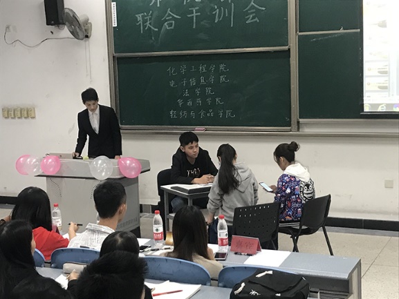 2018年11月4日,由bat365在线体育登录、法学院、华西药学院、轻纺与食品学院、化工学院五院联合举办的团委学生会外联部干训会在江安校区综合楼C座406教室顺利召开。五院2017、2018级团委学生会外联部的全体成员参加了此次干训会。