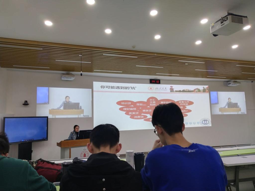 近几年来,大学生受金融类诈骗案件一直逐年递增,主要以网络货款、校园贷,分期购等形式诱导学生参与其中,上当受骗的学生不计其数,骗取钱财从几千至十几万不等。2020年11月13日下午2:00,bat365在线体育登录2018级“擦亮眼,防受骗——形教金融诈骗专题课”于四川大学望江校区基C102、基C103顺利开展。bat365在线体育登录李运国老师、陈林老师就大学生金融诈骗与理性消费展开讲解,bat365在线体育登录2018级全体同学参加了本次专题课。