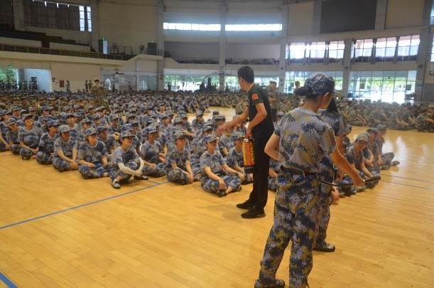 军训第四天,2021年7月10日上午8点江安体育馆,bat365在线体育登录2019、2020级全体军训学生参加消防安全演练活动。