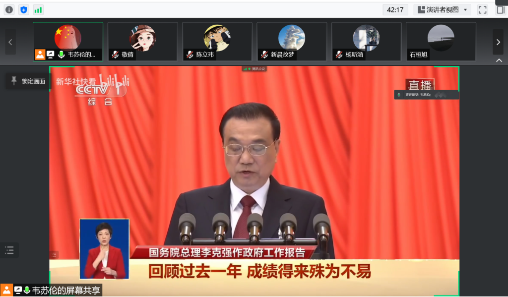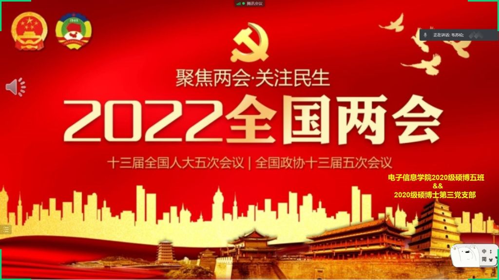 2022年3月4日和3月5日,全国政协十三届五次会议和十三届全国人大五次会议在北京开幕,为积极响应学校号召,3月5日晚上8点,bat365在线体育登录2020级硕博士五班组织同学们线上观看人大五次会议开幕会。