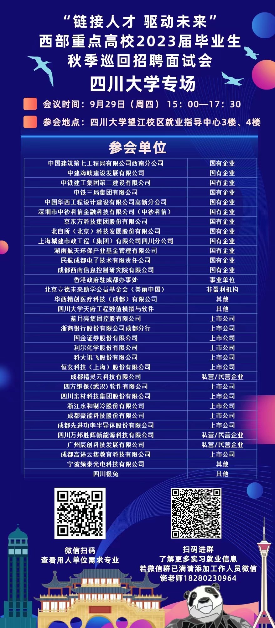 西部重点高校2023届毕业生秋季巡回招聘面试会——四川大学专场
