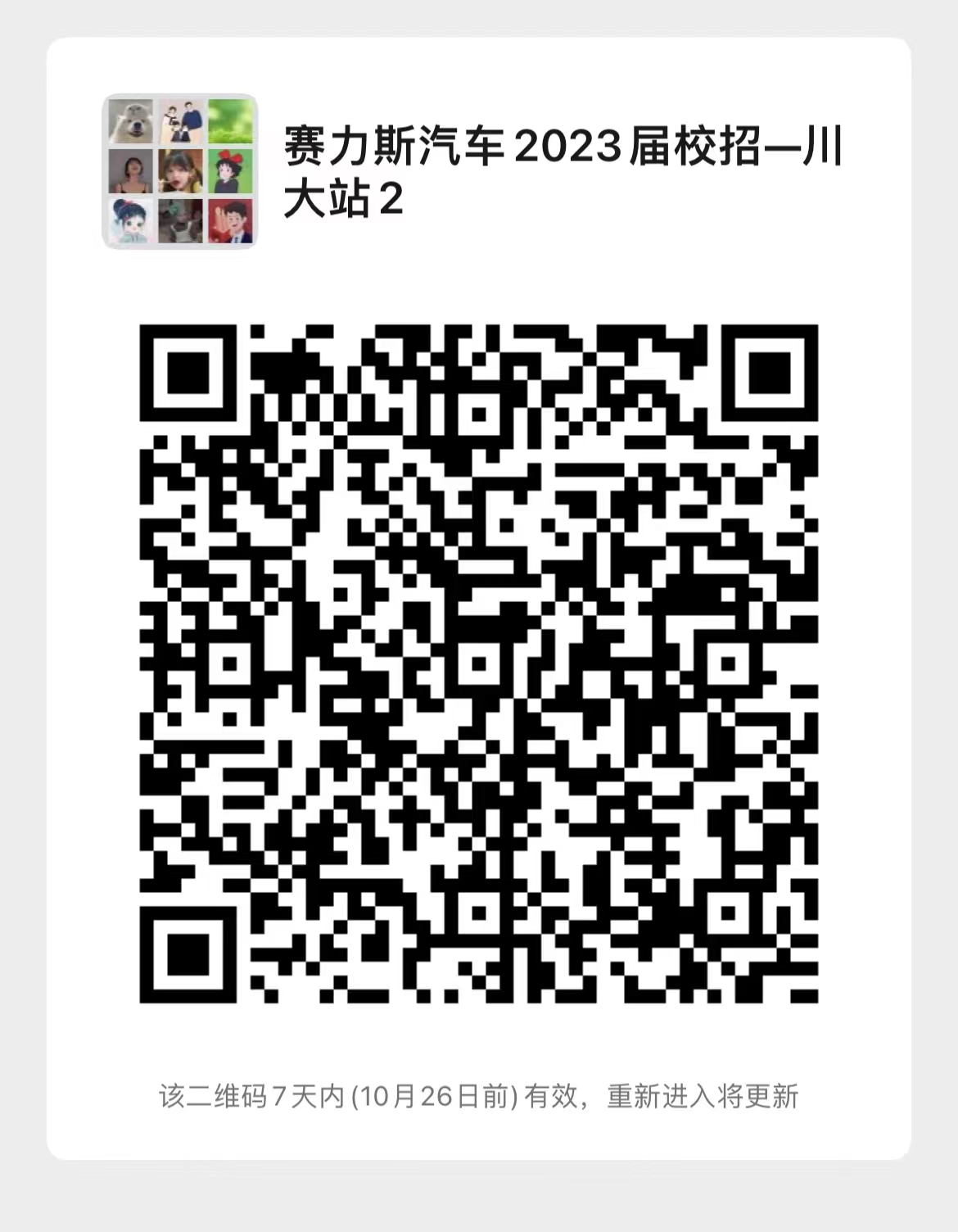10月20日18:20就业指导中心303室赛力斯汽车2023届校园招聘