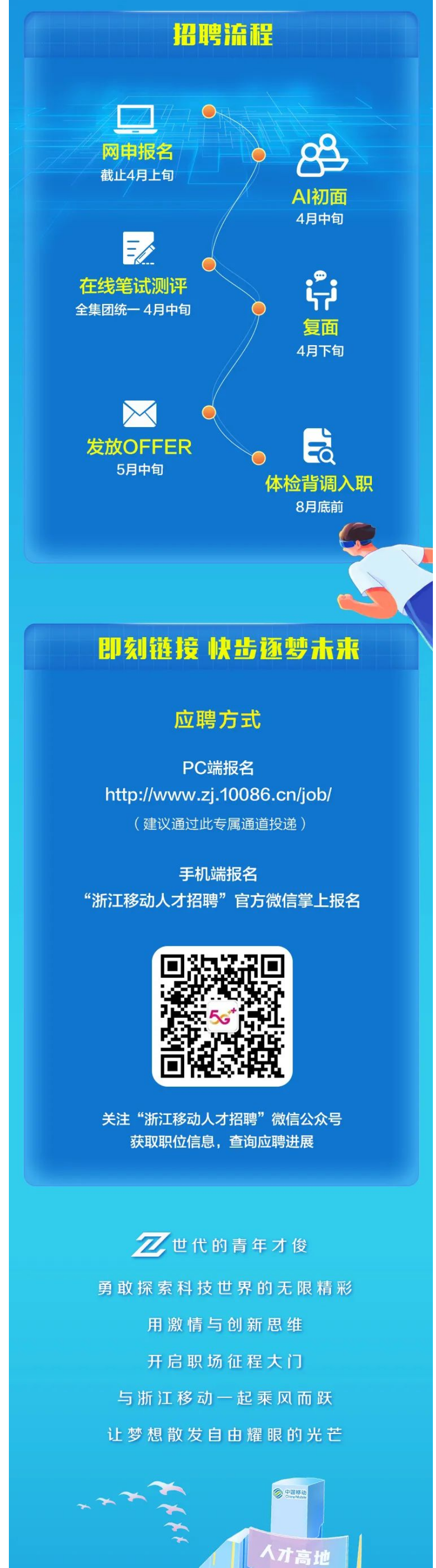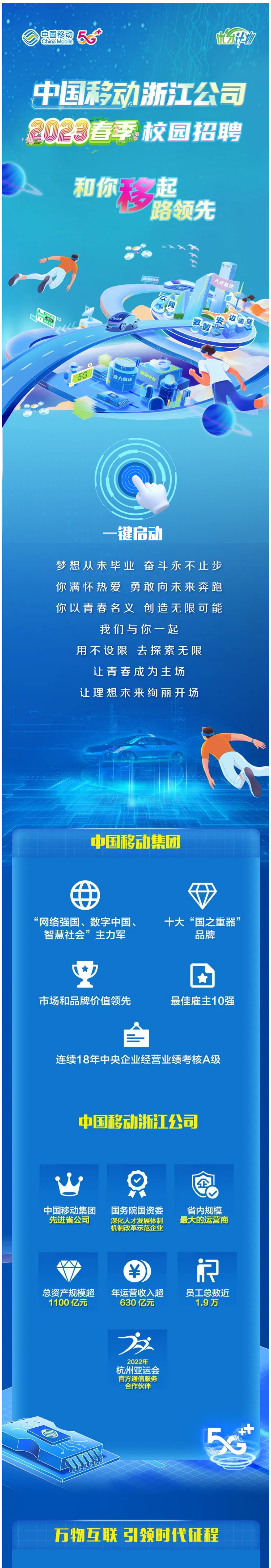 浙江移动招聘链接:https://mp.weixin.qq.com/s?__biz=MzU1MzExMDQyNQ==&mid=2247485273&idx=1&sn=6ea6de2418f29f3f235b89cf91046cd8&chksm=fbf699afcc8110b96d09eda1023f774e9461331225338ca6a5875f5cf15b4ae5c8d7dcaefbd9&mpshare=1&scene=23&srcid=0223HVidqa4a2pRCDcr7LxQD&sharer_sharetime=1677147034435&sharer_shareid=3160ff85e65dfb3e9d7776787cd155d5#rd