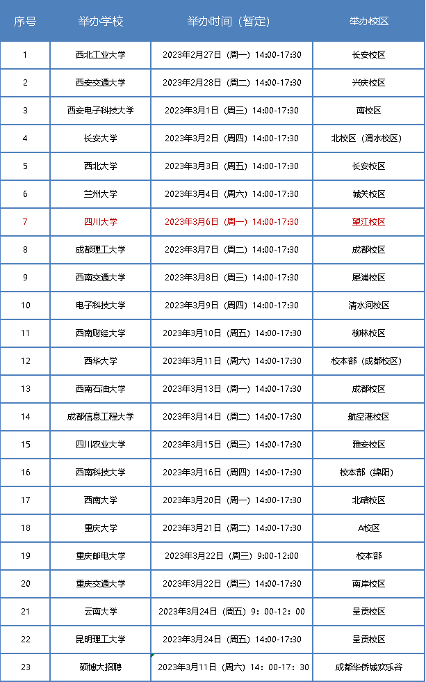 “链接人才 驱动未来” 2023年春季西部重点高校毕业生巡回招聘面试会——​四川大学专场