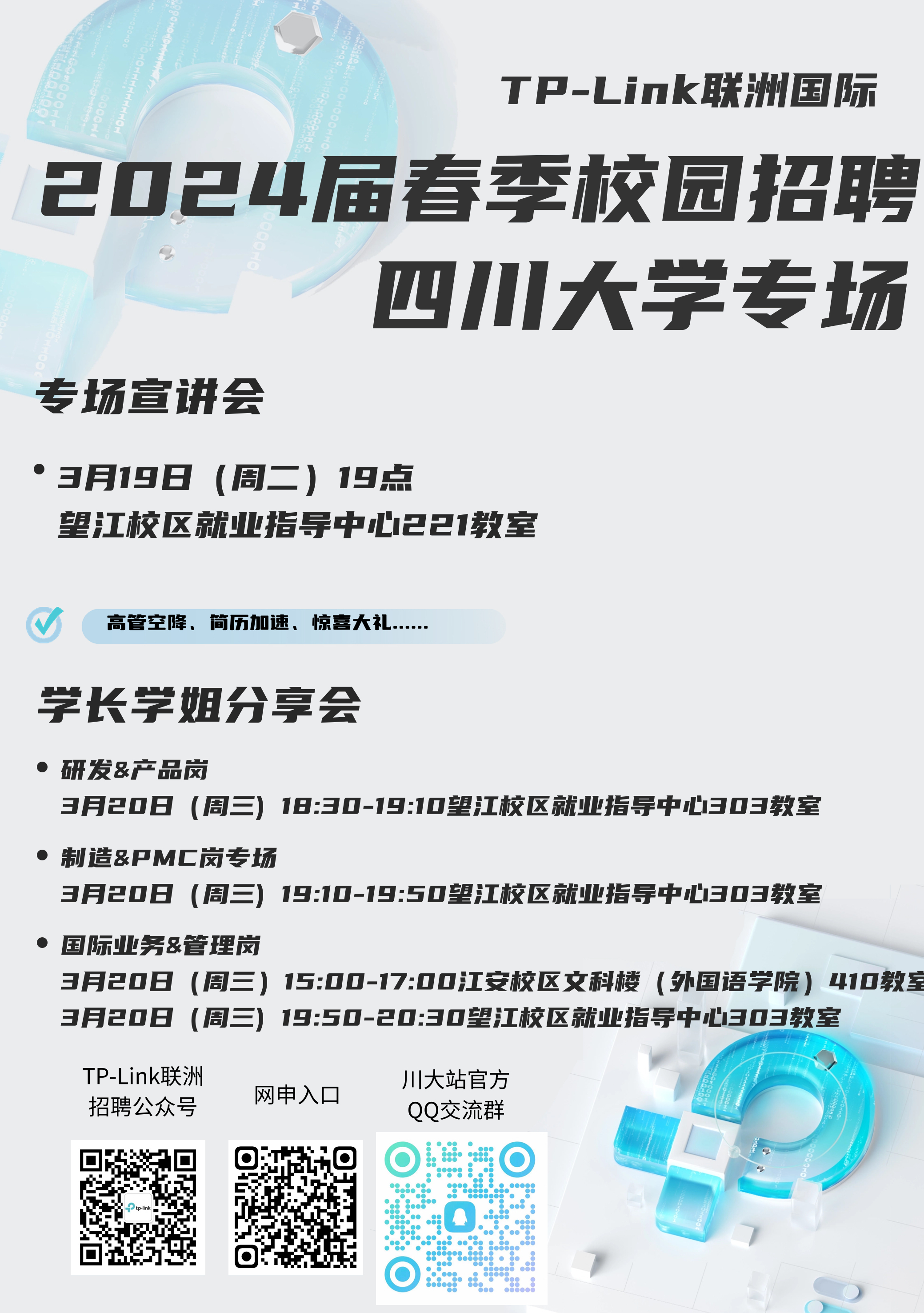 【TP-Link联洲宣讲会】川大专场宣讲会来啦