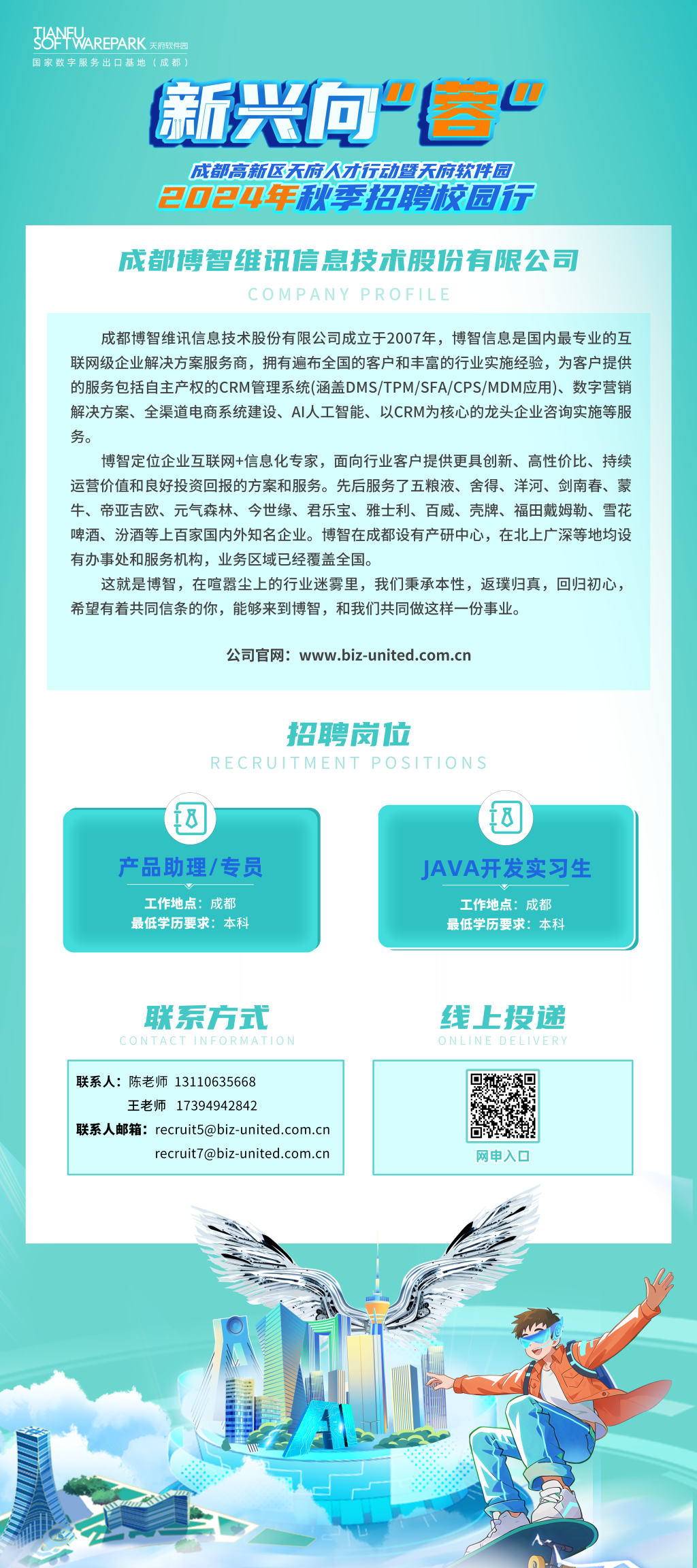 成都博智维讯信息技术股份有限公司2024年秋季招聘
