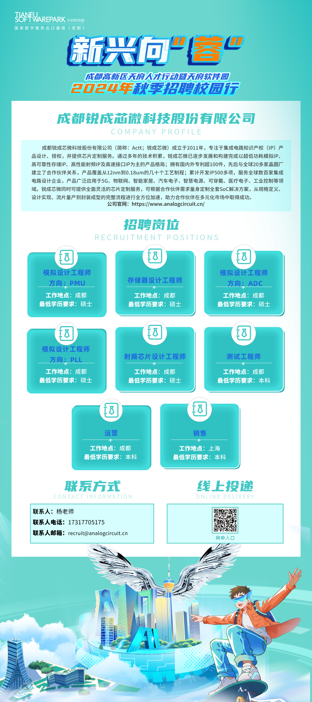 成都锐成芯微科技股份有限公司2024年秋季招聘