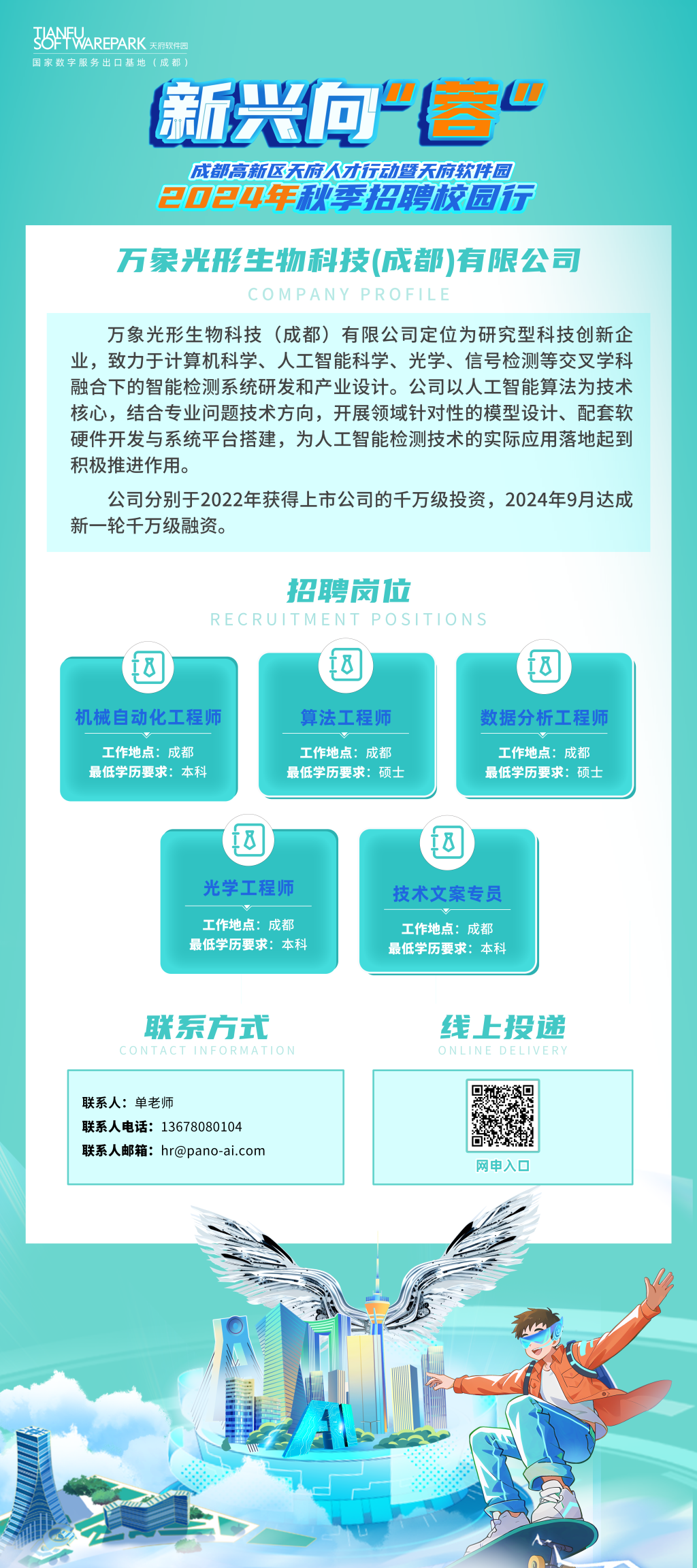 万象光形生物科技(成都)有限公司2024年秋季招聘