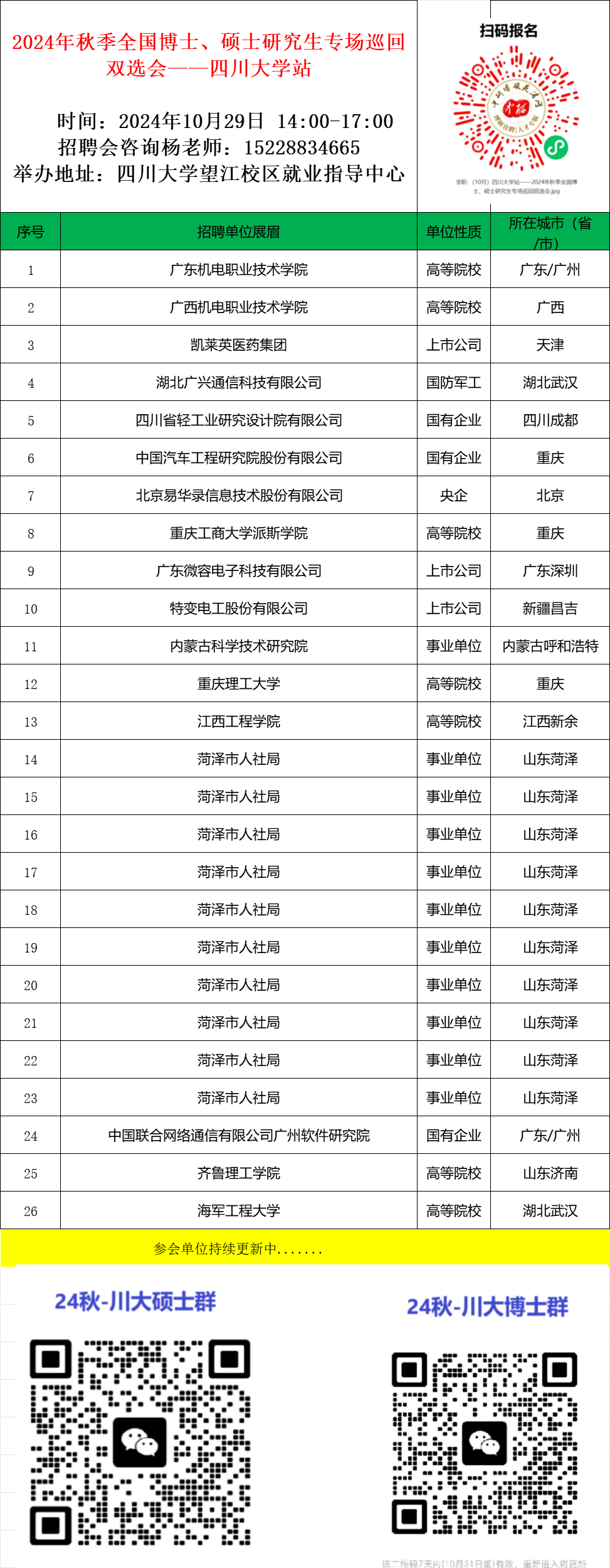 2024年秋季全国博士、硕士研究生专场招聘会—四川大学站
