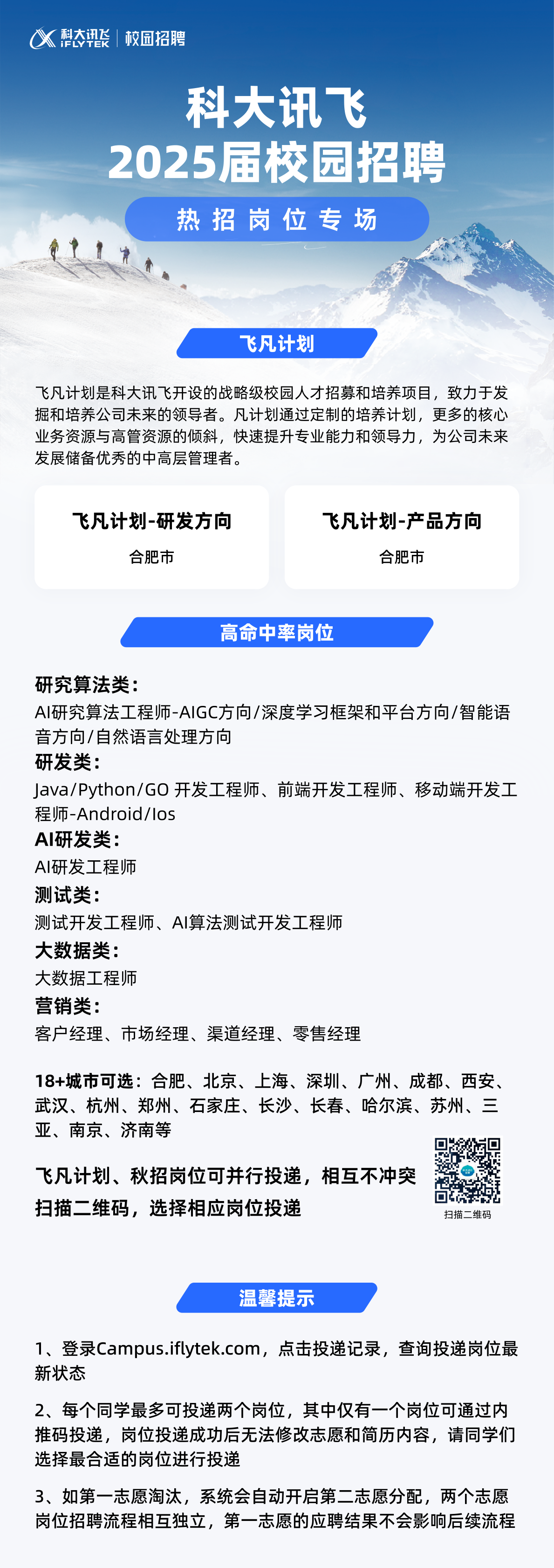 🌟 科大讯飞25届校园招聘【热招岗位】专项推荐!🌟