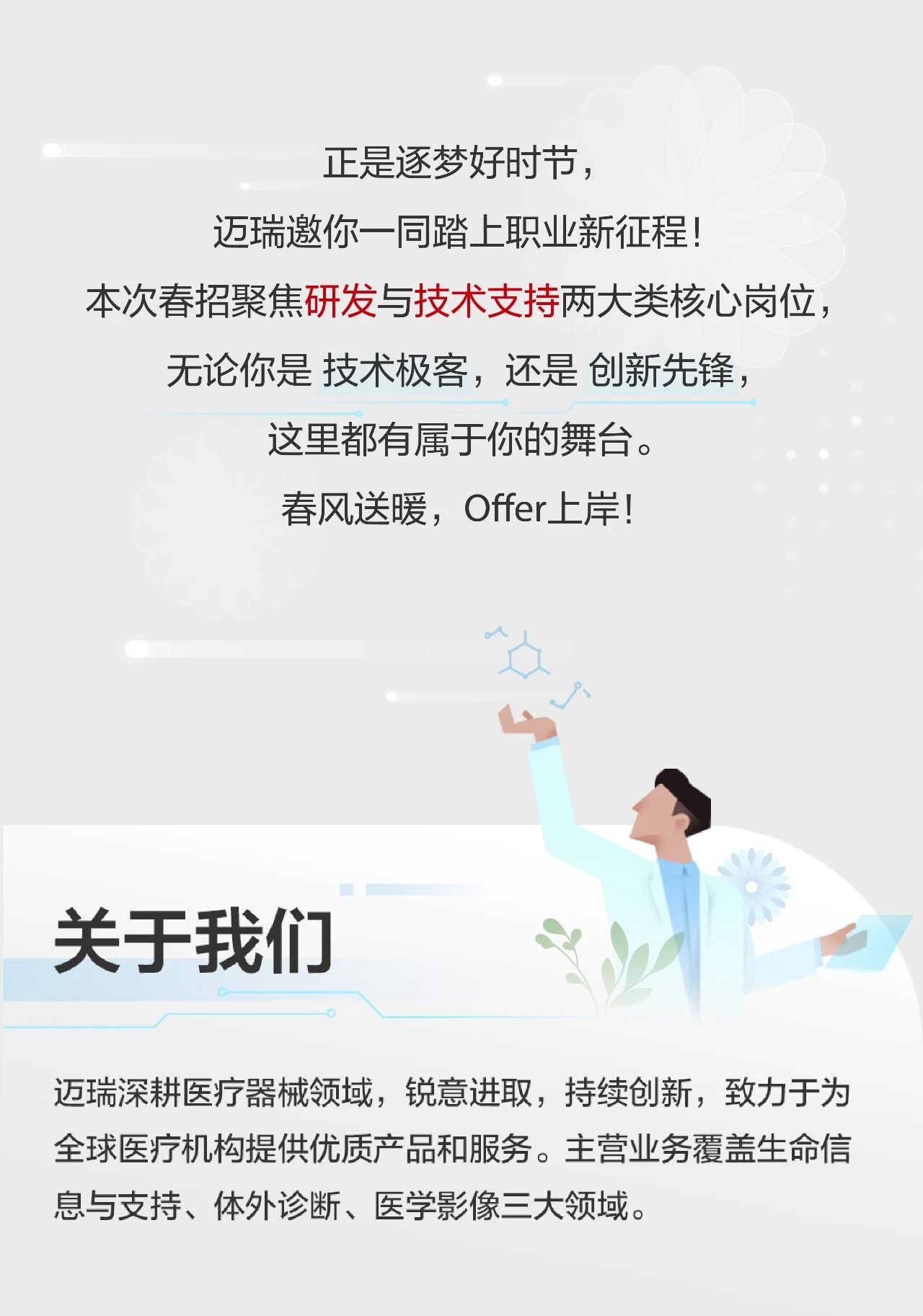 迈瑞 2025 届春招已正式开启,本次春招重点招聘研发和技术支持类岗位。同学们可通过迈瑞官网,或关注【迈瑞招聘】微信公众号进行网申。