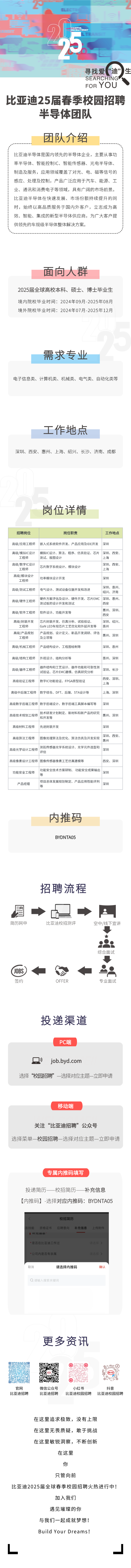 移动端:关注“比亚迪招聘”公众号 - 选择菜单 - 校园招聘 - 选择对应主题 - 立即申请