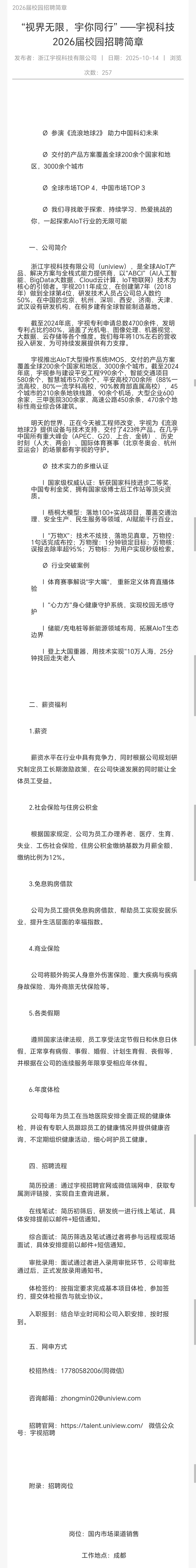 宇视科技2026届校园招聘