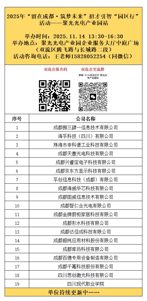 ✅活动地址:聚光光电产业园企业服务大厅中庭广场(双流区腾飞路与长城路二段)