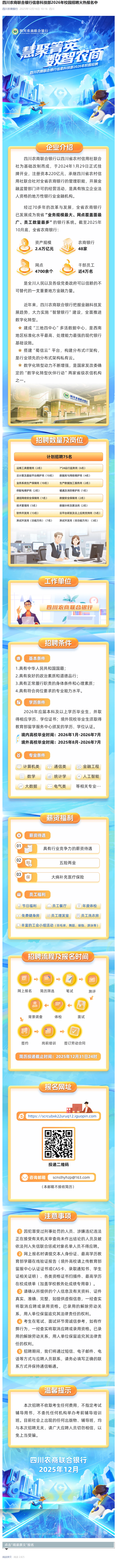 四川农商联合银行信息科技部2026年校园招聘