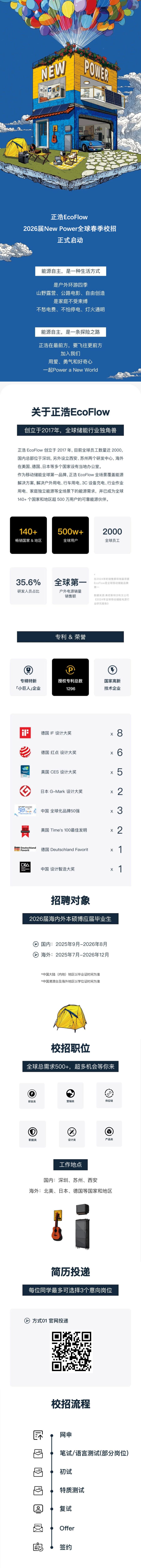 正浩创新EcoFlow2026届全球校园招聘(春季)全面启动!