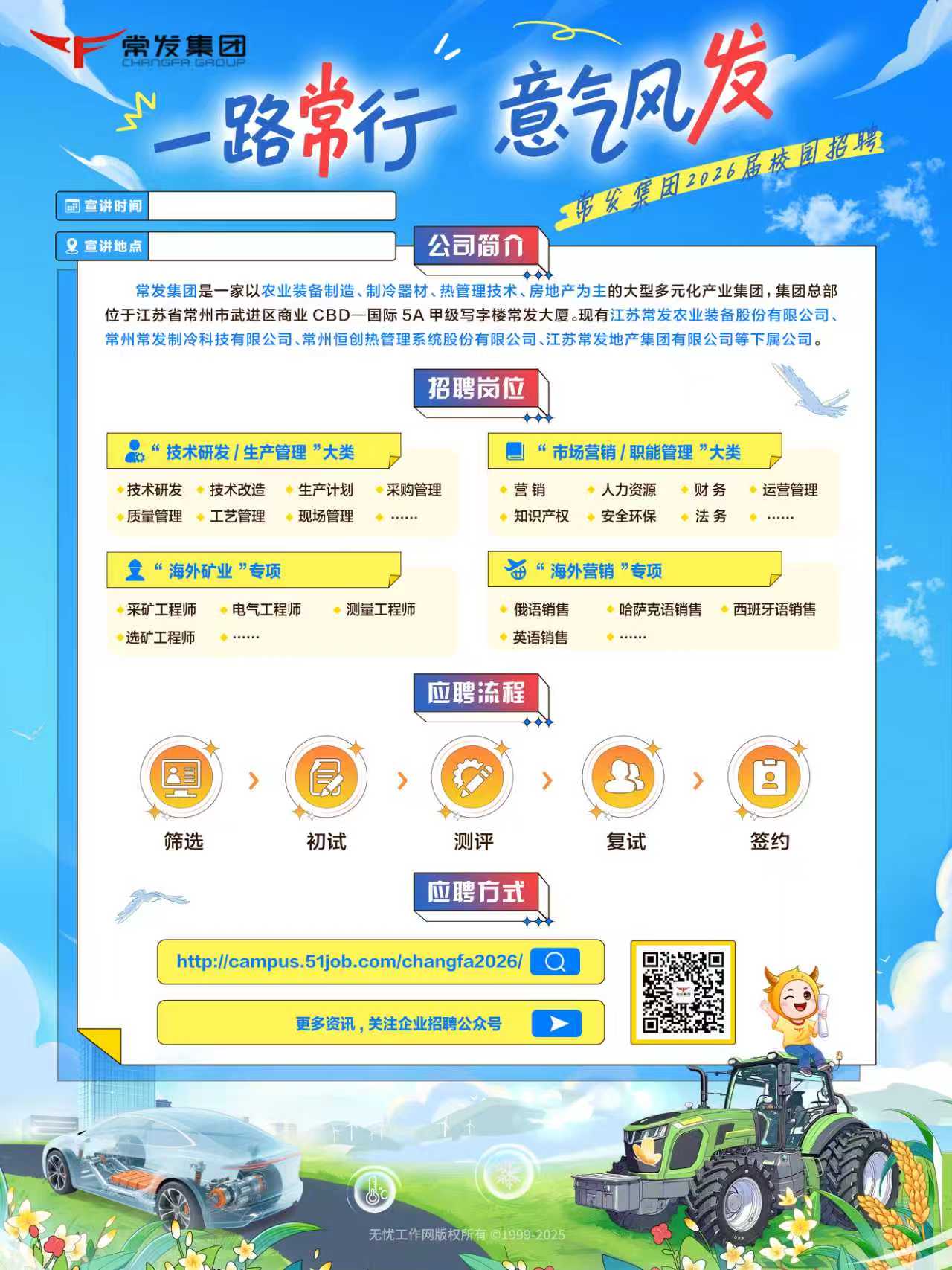3.19下午15:20-16:30 望江校区就业指导中心215室 江苏常发实业集团2026届校招
