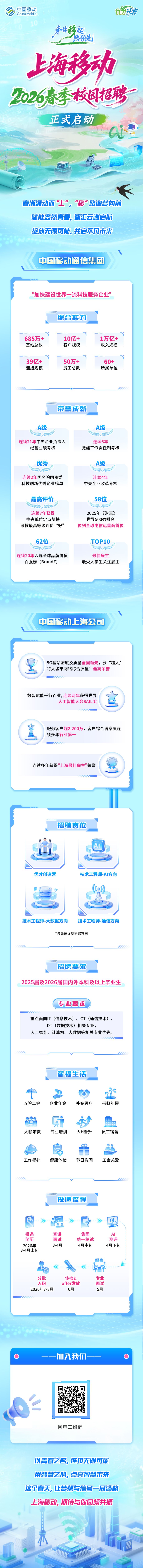 【上海移动】中国移动上海公司2026春季校园招聘正式启动啦!