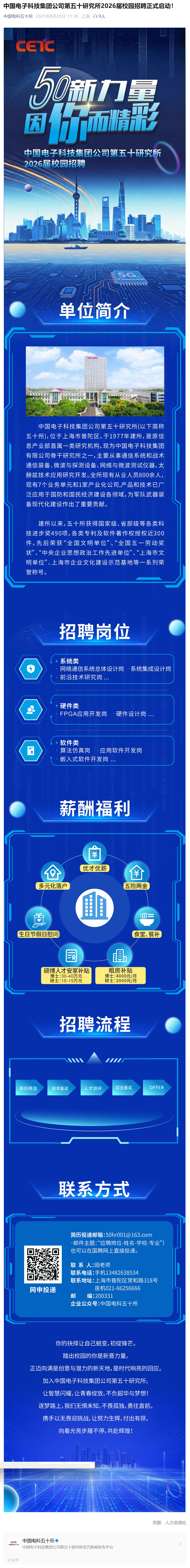 中国电子科技集团公司第五十研究所2026届校园招聘